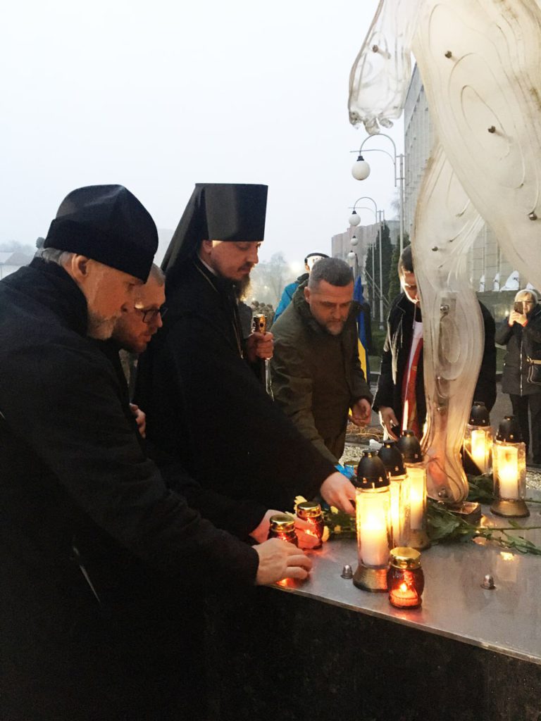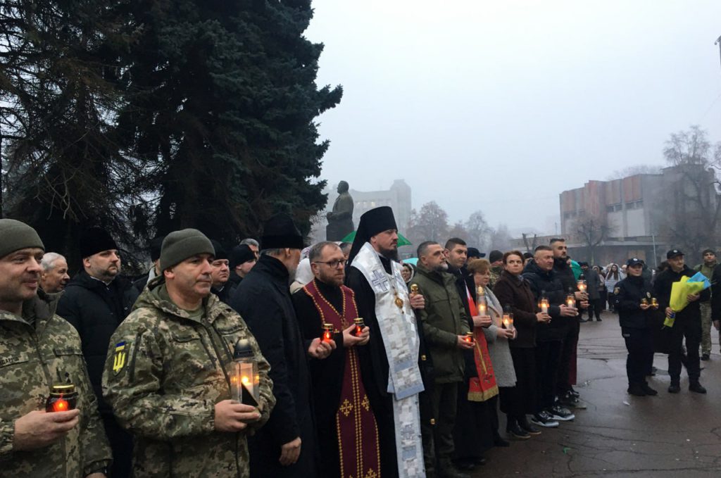 Сьогодні у Житомирі відбувся урочистий мітинг з нагоди Дня Гідності та Свободи, участь у якому взяли співробітники Національного музею космонавтики ім. С. П. Корольова.
