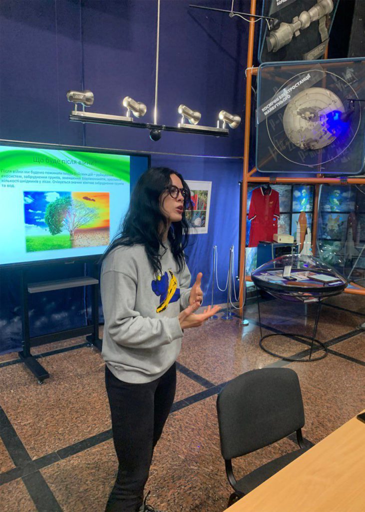 «Земля дихає тоді, коли дбаємо про неї. Людина і природа невід’ємні. А космос допомагає нам побачити, як важливо берегти свій дім», – сказала наша наукова співробітниця Олена Галагуза.