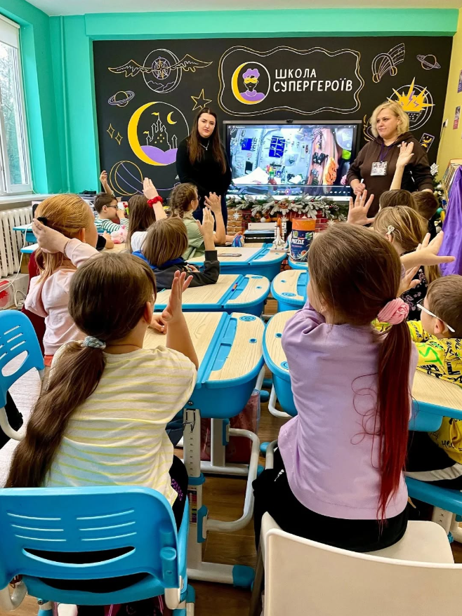 🚀 🌍 Представниці Музею вкотре завітали до давніх друзів – учнів освітнього центру державної установи “Школа Супергероїв”, що працює у Житомирьскій обласній дитячій лікарні. Тут діти поряд із лікувальними процедурами продовжують навчатися, розвиватися та розважатися. Супергеройчики дізналися багато цікавої інформації про Сергія Корольова та Леоніда Каденюка. Напередодні новорічних свят у дружній атмосфері поговорили про те, як зустрічають космонавти Новий рік на Міжнародній космічній станції🛰