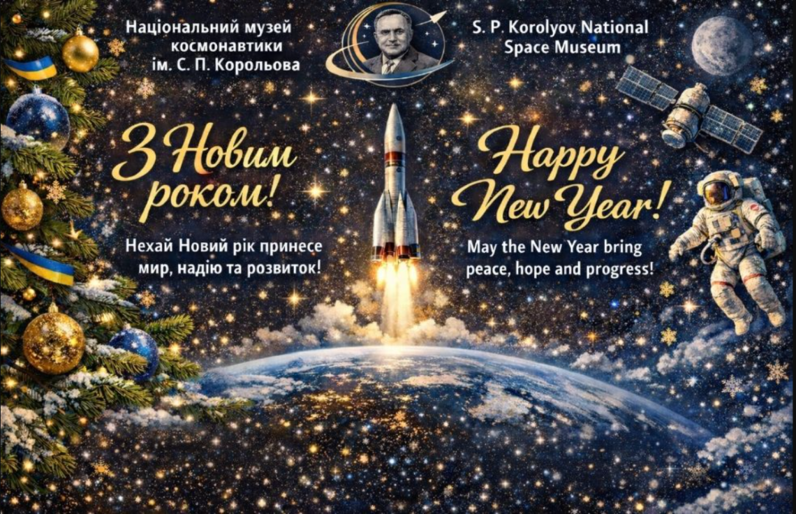 Національний музей космонавтики імені С. П. Корольова щиро вітає вас з Новим роком.
