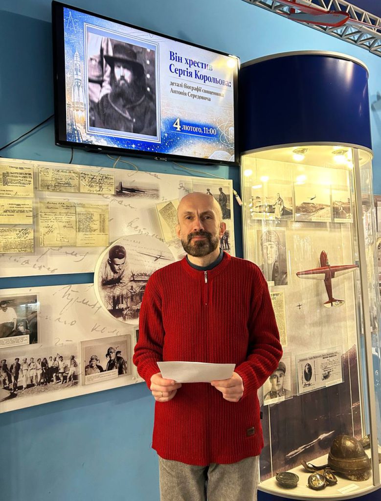 Яким було його життя – священика, котрий тримав на руках майбутнього Головного конструктора? Дотепер було мало відомо про це. Прогалину спробував заповнити молодший науковий співробітник нашого Музею Сергій Бовкун – який провів дослідницьку роботу та представив її результати під час семінарського заняття на тему «Він хрестив Сергія Корольова: деталі біографії священика Антонія Середовича».