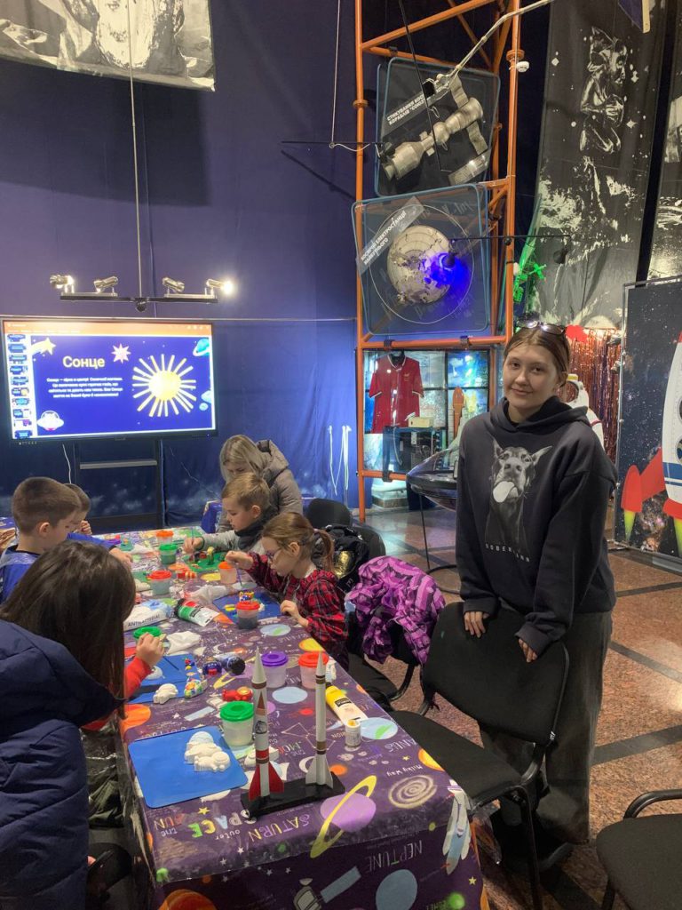 Малеча із захопленням танцювала разом із роботом Меканоїдом, долучилася до складного майстер-класу, розв’язувала рівняння та логічні завдання, тренувалася, як справжні космонавти. Через гру, рух і творчість діти відкривали для себе світ науки та отримували позитивні емоції.