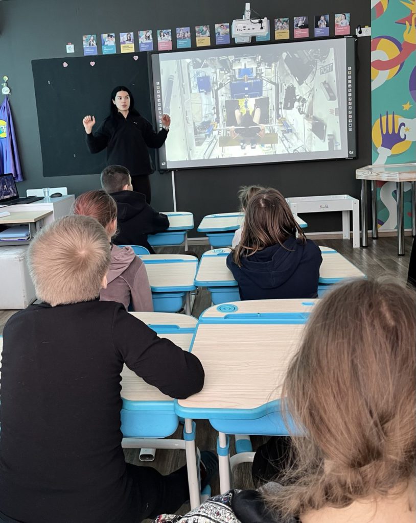 Співробітниця Національного музею космонавтики імені С. Корольова Олена Галагуза завітала до Житомирського освітнього центру № 1 ДУ Школа Супергероїв , який функціонує на базі стаціонару для обслуговування дитячого населення КП “Лікарня № 2 імені В. П. Павлусенка” Житомирської міської ради, де мають змогу навчатися маленькі пацієнти під час лікування. Пані Олена провела заняття, присвячене космосу та фітнесу з інтеграцією англійської мови 🇬🇧✨