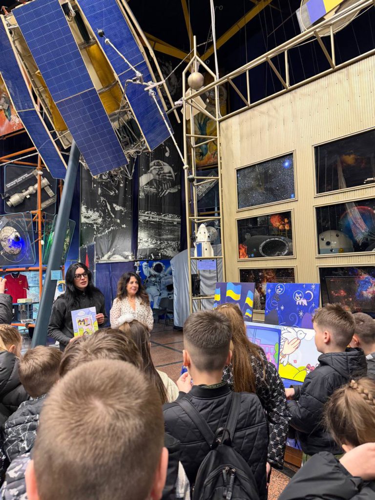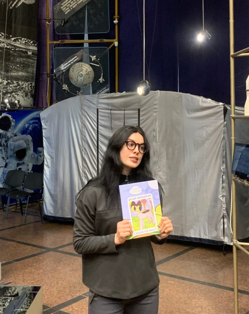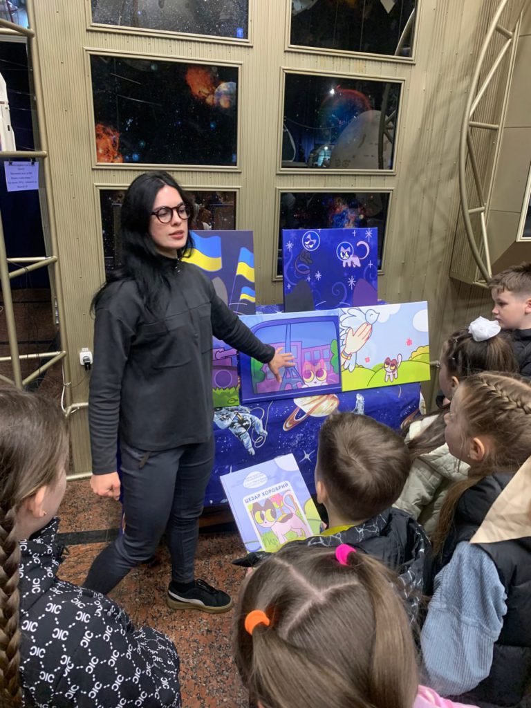 Освітній проєкт інтегрованих уроків англійської у рамках поліпшення ментального здоров’я ініціювала Генеральний директор Національного музею космонавтики ім. С. П. Корольова Ірина Дячук. На початку уроку Олена Галагуза передала Ірині Дячук роботи юної художниці із Бучі Нонни Ейсмонт, яка ілюструвала «Цезар хоробрий». Нонна пережила ті події і, як ніхто, знає, як віднайти радість у непростих умовах. Ці картини будуть зберігатися у фондам музею. Ірина Дмитрівна поспілкувалася із дітьми про домашніх улюбленців, що вони є не просто тваринами, а повноцінними членами родини.